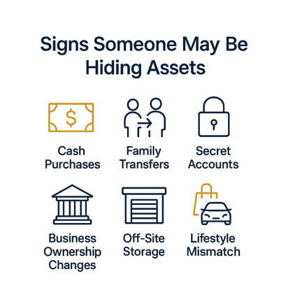 Asset search companies and private investigators are trained to find hidden assets. These individuals can help you find your target's hidden assets so that you can see whether or not they are hiding money from you.